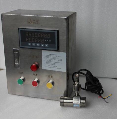 流量(liàng)傳感器(qi) (選(xuan)擇對應(ying)的口徑(jìng)和流量(liang)控制流(liú)量範圍(wéi) )+泵(bèng)或電磁(cí)閥門+定(ding)量控制(zhì)櫃